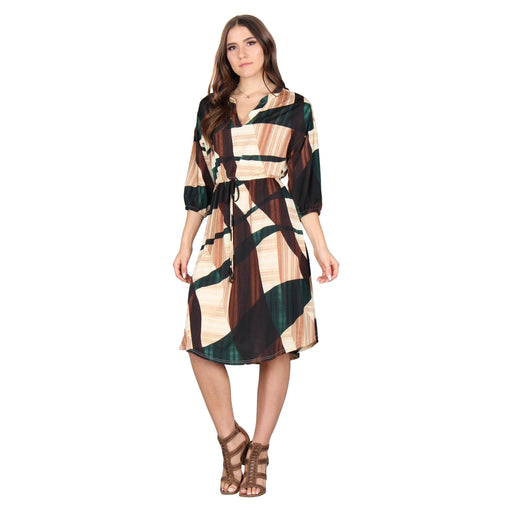 FEATURES Split V-neckline 3/4 Bishop sleeves with drop shoulders Adjustable drawstring tie on the waist Rounded hemline Soft & stretchy fabri...