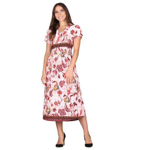 FEATURES V-Neck Kimono sleeves Smocking on the waist Adjustable tassel tie on the back Stretchy fabric Pullover styling Great for spring and summe...