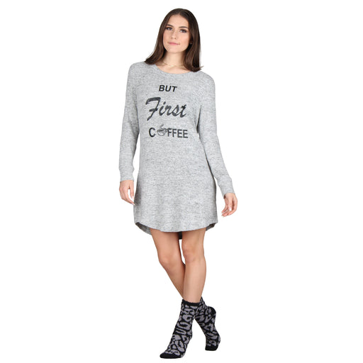 FEATURES Scoop neck Graphic print at front Pullover styling Rounded hem hits above knee Set includes one pair of socks Great for fall & winte...