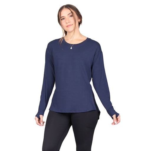 FEATURES V-neck Long sleeves with thumbholes High-low hem Back yoke with pleat detail Loose fit Buttery soft & stretchy fabric Pullover stylin...