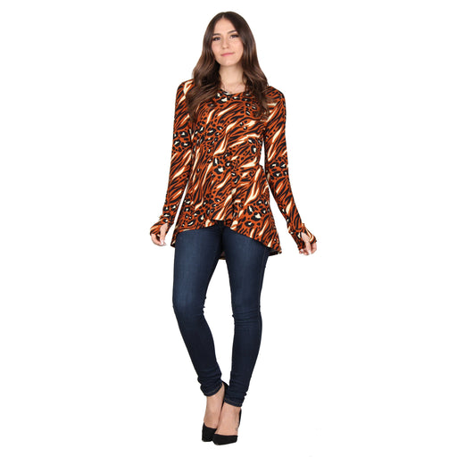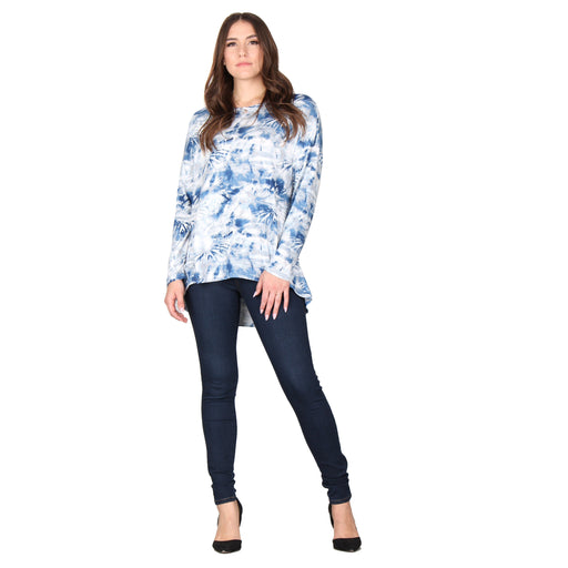 FEATURES • Round neck • Long sleeve • Hi-Low curved hem • Side slits • Loose-fitting design • Stretchy fa...