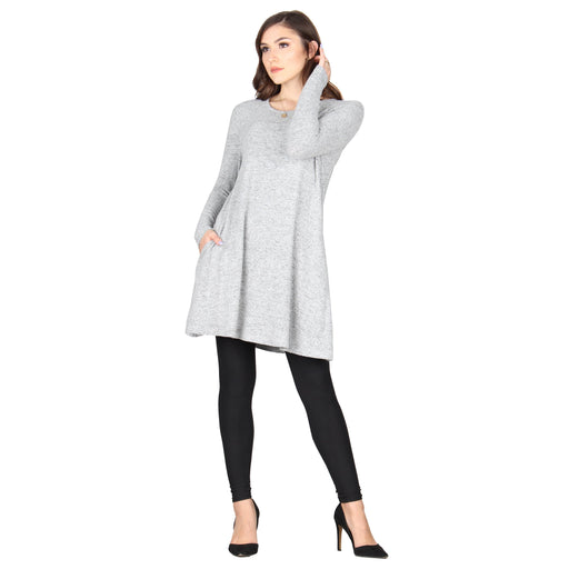 FEATURES Scoop neckline Long sleeves In-seam pockets Swing silhouette Hits at knee Soft & stretchy Pullover styling Great for spring, fall &a...