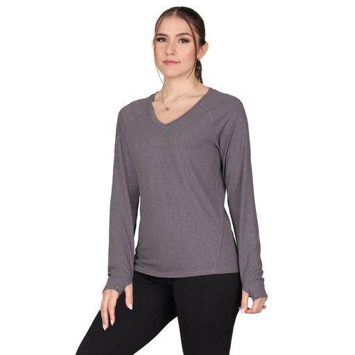 FEATURES V-Neck Mesh on the back Long raglan sleeves with thumbhole cuffs Tag free Semi Fit Pullover styling Garment Details: 4-way stretch, brea...