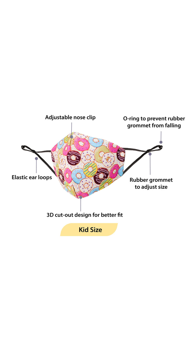 Reusable Kids Fabric Face Masks With Adjustable Nose Clip, Washable